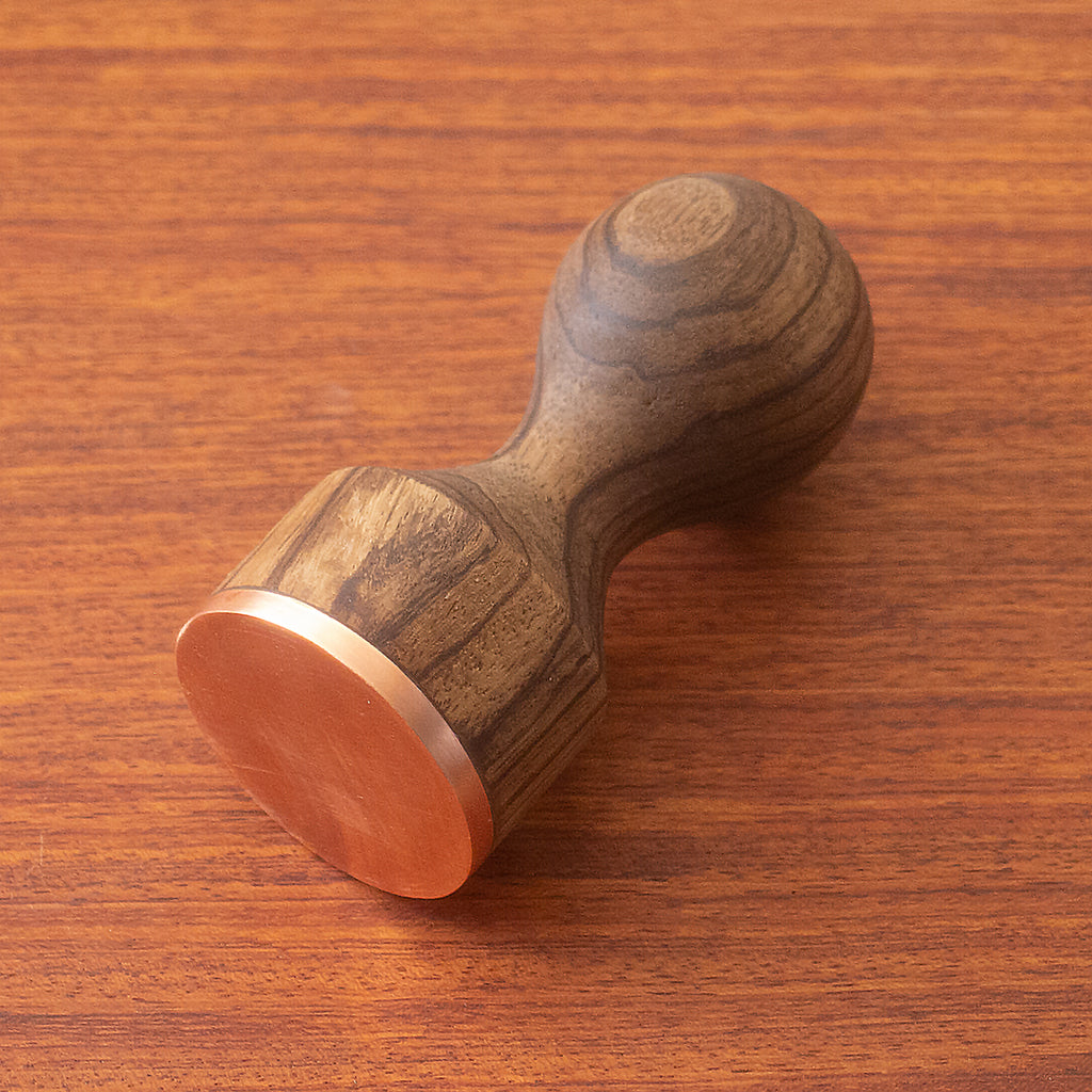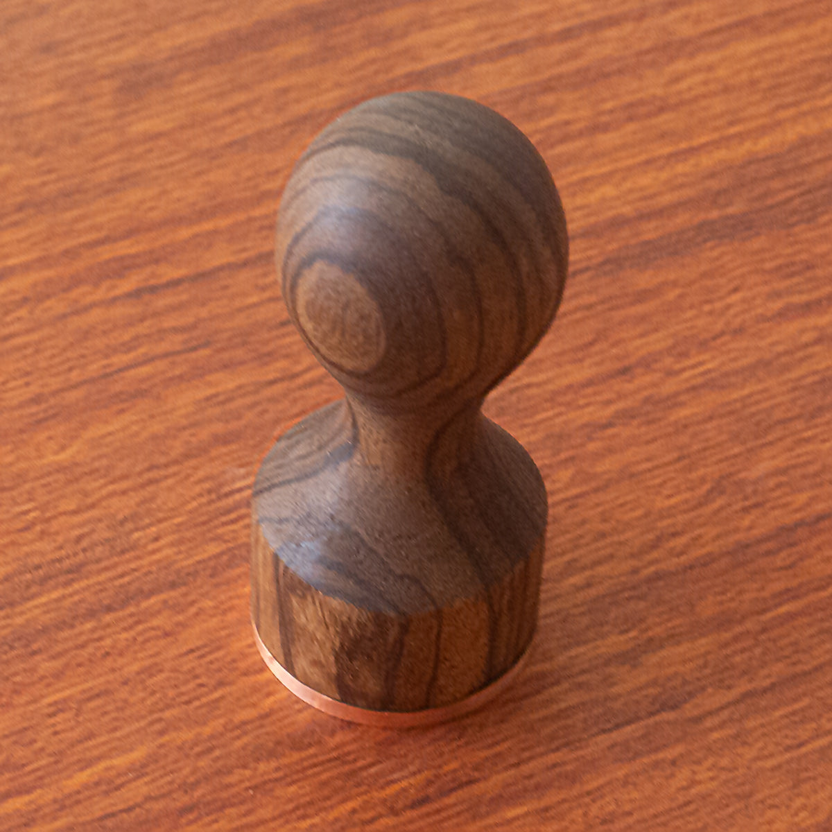 I had some 6-gauge copper lying around, and I figured a 4mm thick disc of metal would be heavy enough and sturdy enough to use as a tamper. I initially set out to make a purely functional tool, but as I was shaping the business end of the tamper I realized that I had the opportunity to make something beautiful.