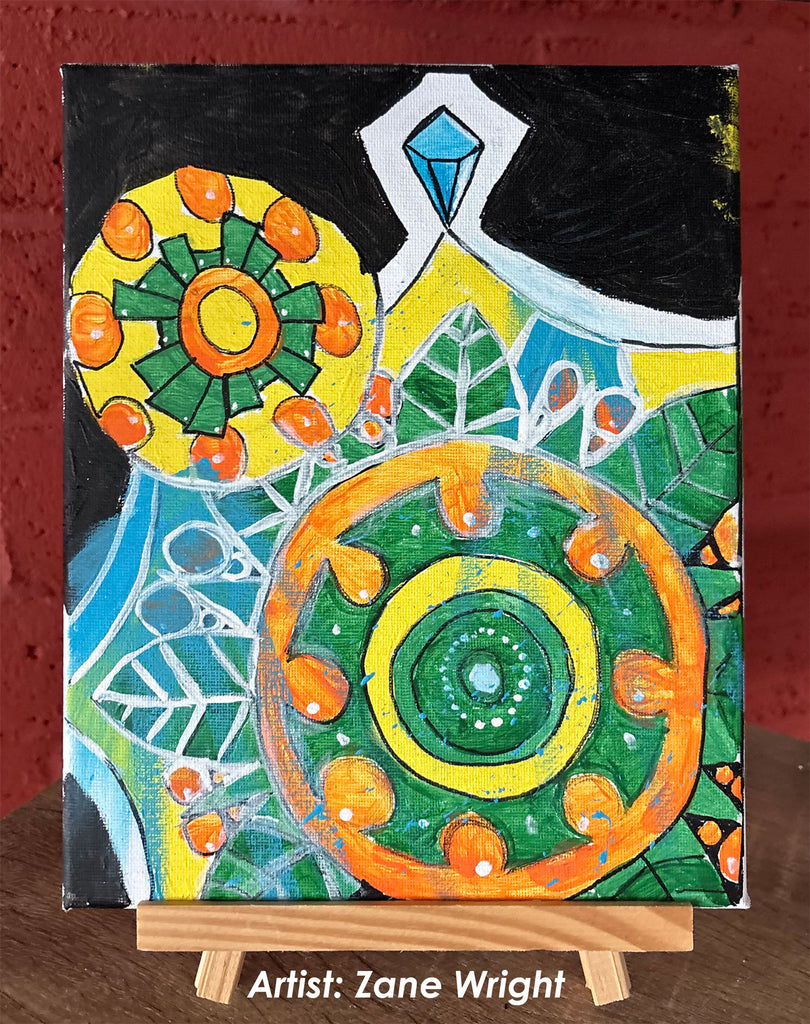 After sitting with it for a while, I decided to deconstruct the elements of the painting to create building blocks. I knew that the floral element was important to both of them, and I was particularly struck by the center of the top left circle element—I saw right away how this cubist flower would look in bas relief versus on canvas. As I built up a library of 3D versions of the various motifs of the painting, I started to feel like I understood the painter a little better—and that's when it hit me.